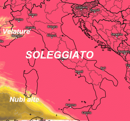 Intanto, l’alta pressione raggiunge oggi la sua massima potenza. Ve la mostriamo con le consuete immagini satellitari in movimento: