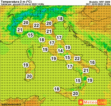 Molte zone avranno temperature oltre i 20°, come se fossimo già nella seconda parte di aprile. Punte di 22° in Valpadana e sul Foggiano.