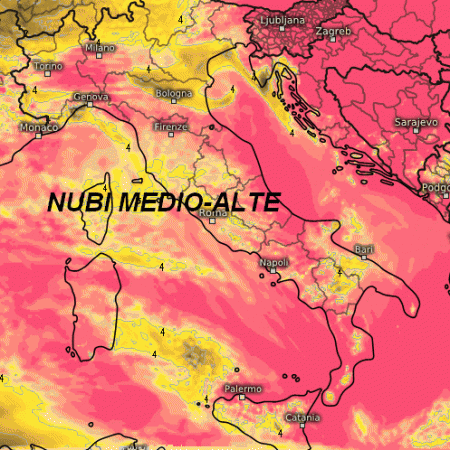 Transito di nubi medio-alte con sabbia africana in sospensione e il sole che potrebbe vedersi a tratti come dietro un vetro smerigliato. Nuvolosità più intensa in serata al nord e al centro, ma senza piogge. Clima molto mite e Scirocco in rinforzo sul Tirreno.