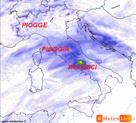 Piogge e rovesci soprattutto al centro, ma anche il nord verrà interessato da alcune precipitazioni. Tempo più asciutto sulle Isole e all’estremo sud. Temperature in calo specie nelle aree raggiunte dai fenomeni.