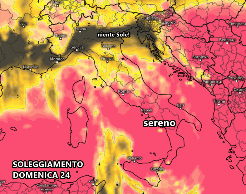Insomma non avremo davvero bel tempo: solo sul medio-basso Adriatico e l’arco ionico avremo una prevalenza di cielo sereno nei prossimi 3-4 giorni, mentre sul resto d’Italia prevarranno le nubi basse e localmente anche le nebbie in Val Padana. Già domani avremo una vasta distesa di nubi basse in Val Padana, pronte a bloccare totalmente i raggi del Sole.