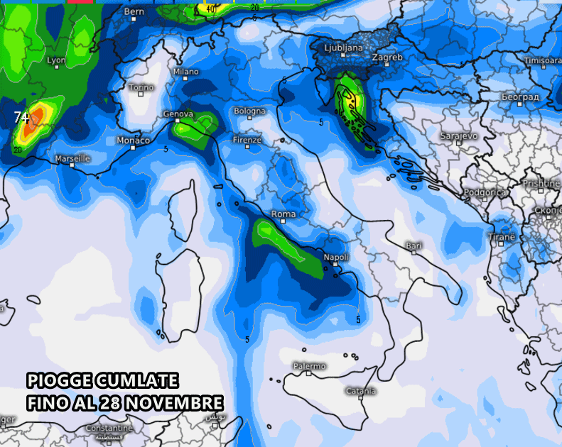 Inoltre arriveranno anche altre piogge! In particolare da lunedì a giovedì le correnti da sud-ovest diverranno molto più umide, causando una maggior condensa a ridosso delle coste tirreniche, delle colline e dei monti. Ciò sarà responsabile di piogge deboli/moderate su Liguria, Toscana, Lazio e Campania, oltre che su Lombardia, Emilia, Veneto e Friuli. Insomma, occorrerà l’ombrello anche in questo apparente periodo “stabile”.