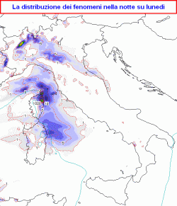 EVOLUZIONE: tra lunedì e martedì un impulso instabile attraverserà il Paese, pur disturbato dalla presenza dell’anticiclone, fenomeni soprattutto a ridosso delle isole maggiori ma possibili anche sulle zone continentali, specie lunedì. Nei giorni successivi l’alta pressione avrà ancora probabilmente la meglio favorendo tempo buono e molto mite, ma sempre