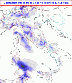 Accentuazione dell'instabilità su alcuni settori del Paese perché l'alta pressione non riesce più ad arginare l'invadenza delle correnti occidentali. Tra lunedì e martedì situazioni instabili, poi sostanziale tenuta del bel tempo sino a venerdì. Nel fine settimana...