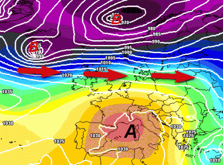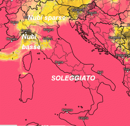 Alta pressione sull'Italia fino a venerdi tranne qualche incertezza sulla Liguria e il Tirreno.