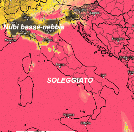 Al nord potrebbero tornare le nebbie associate a nubi basse sulle pianure e in Liguria con peggioramento della qualità dell’aria; piu sole sulle Alpi. Sul resto d’Italia tempo stabile, soleggiato e mite.