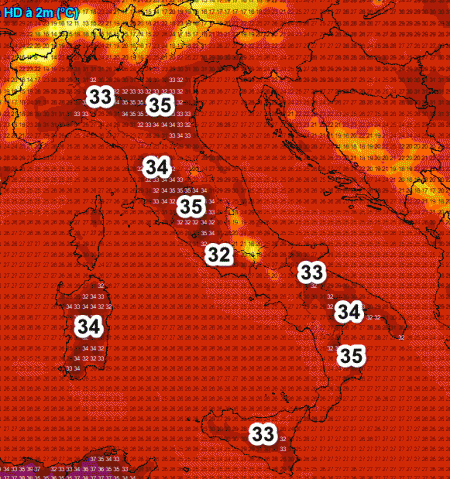 Punte di 35° saranno possibili sull’Emilia Romagna, le aree interne della Toscana e sulla Calabria ionica.