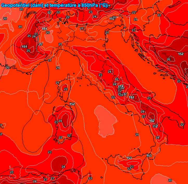 Le masse d'aria molto calda che ci stanno interessando saranno insidiate da infiltrazioni di aria più fresca di origine atlantica.