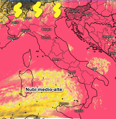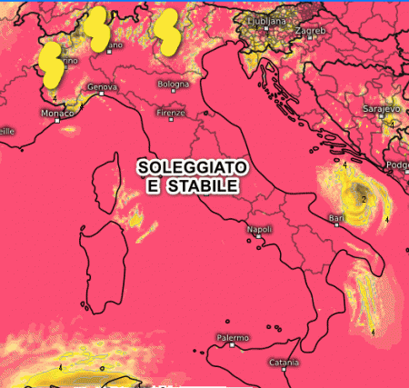 Su Alpi, Prealpi e nord Piemonte saranno possibili temporali nell’arco della giornata, specie tra pomeriggio e sera. Su tutte le altre regioni soleggiato ed anche molto caldo specie al sud e sulle Isole.