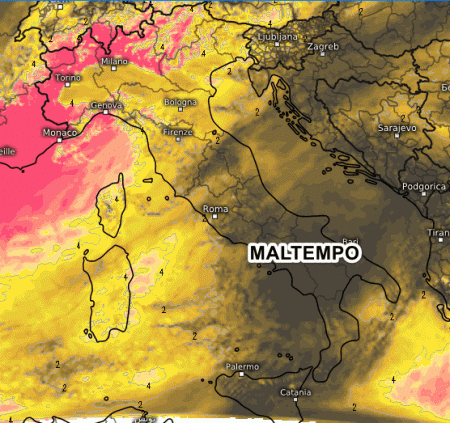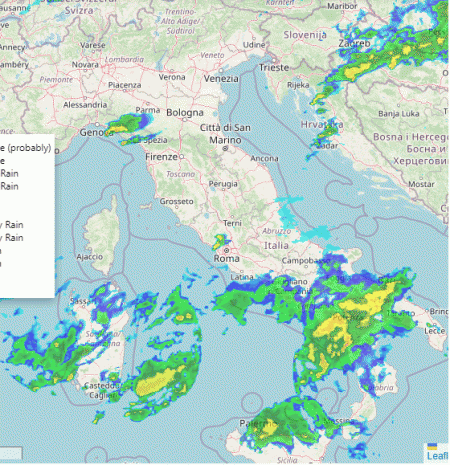 Le piogge più intense le ritroviamo tra la Sardegna e il meridione, in modo particolare tra Cilento, Calabria e Lucania. Per il resto le piogge sono scarse se si eccettua qualche temporale nell’area di Roma e sul Levante Ligure.
