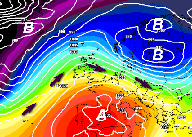 Questa configurazione barica è la peggiore per l’Italia, perché la lascia leggermente esposta a correnti da nord-ovest che provocano spesso repentini rialzi delle temperature, specie in concomitanza del transito di fronti caldi sull’Europa centrale che, con la loro coda vengono ad influenzare anche noi con la loro nuvolaglia sterile, introducendo solo aria ulteriormente mite.