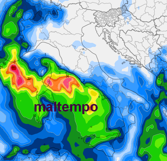 Da venerdì 7 ecco già una prima figura depressionaria affacciarsi sul Tirreno e coinvolgere le Isole Maggiore e le coste delle regioni tirreniche con piogge e temporali, come vediamo in questa mappa barica: