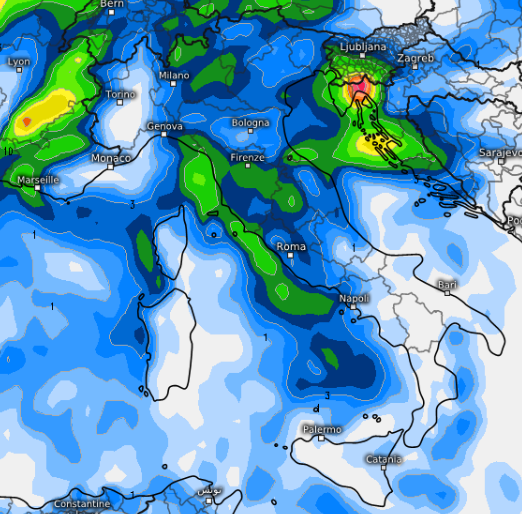 Si nota la concentrazione delle precipitazioni sull’estremo nord-ovest e lungo le regioni tirreniche; i fenomeni poi dovrebbero muoversi lentamente verso nord-est, ma la situazione non è ancora chiarissima. Vi basti però questa mappa prevista per sabato 1° novembre per capire che difficilmente potranno tornare le condizioni previste sino a qualche giorno fa di tempo soleggiato e tranquillo: