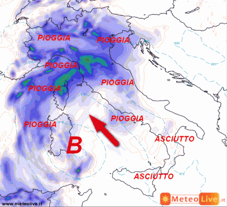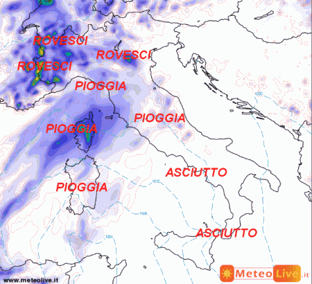 Guardate che belle innaffiate al nord e al centro! Rovesci anche sulla Sardegna e sul medio Tirreno, tempo invece asciutto al sud e sulla Sicilia. Scirocco temporaneo sui mari di ponente, temperature in ulteriore calo al centro-nord, stazionarie al sud.
