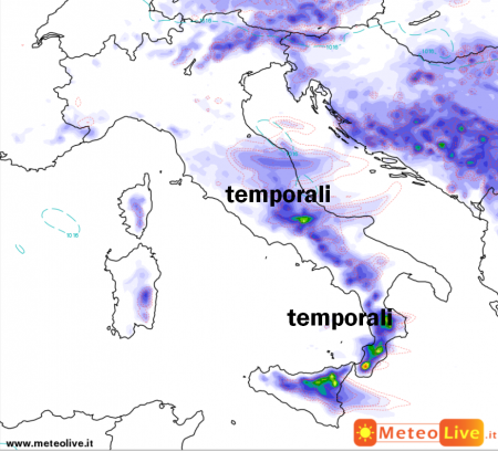 -i possibili temporali localmente anche grandinigeni tra centro-est Lombardia, Veneto, Friuli Venezia Giulia, nord Appennino nelle ore pomeridiane.