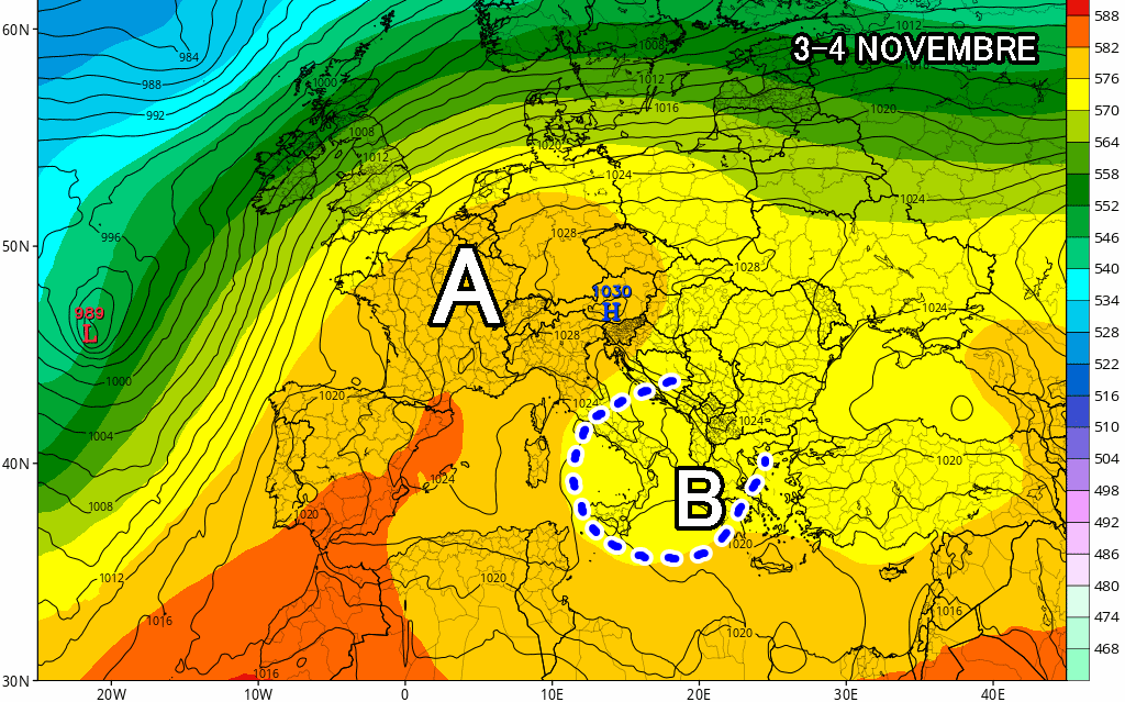 L’arrivo dell’uragano Melissa sul nord Atlantico andrà a potenziare la corrente a getto, che, giocoforza, scatenerà una rimonta anticiclonica sull’Europa occidentale e anche sul Nord Italia nel periodo compreso tra il 3 e il 7 novembre. Questo improvviso ritorno dell’alta pressione sull’Europa occidentale aprirà inevitabilmente le porte a un peggioramento sulle regioni del Centro-Sud, specie sul basso Adriatico e sul meridione.