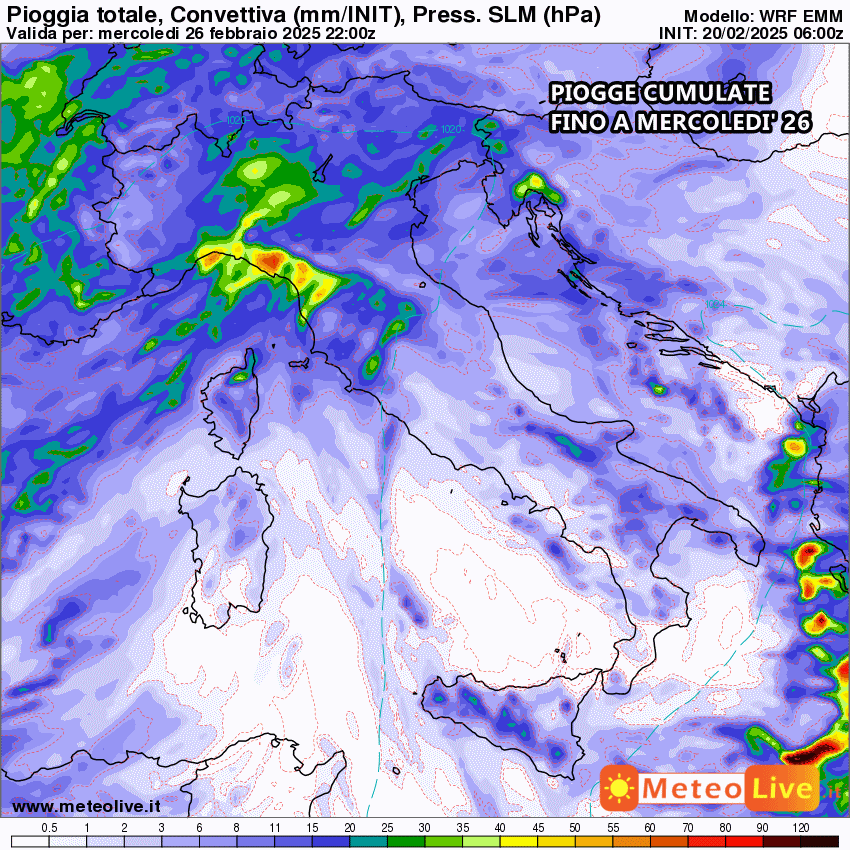 Tutta la pioggia prevista fino al 26 Febbraio: