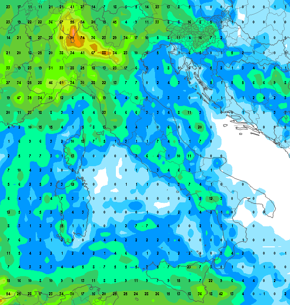 Subito dopo ecco una saccatura tra martedì 9 e mercoledì 10 inserirsi nel cuore del Mediterraneo e portare precipitazioni soprattutto al nord e su parte del centro, poi il tutto evolverà in una goccia fredda in quota che andrà addirittura a sprofondare sul nord Africa, attivando dei nuclei temporaleschi all’estremo sud entro giovedì 11, qui l’evoluzione con una fase delle precipitazioni e la sommatoria delle stesse sino a giovedì: