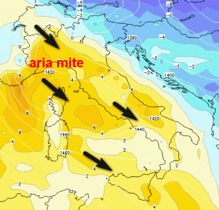 Tra oggi e giovedì breve parentesi mite grazie ai venti tiepidi da nord-ovest, che peraltro coinvolgerà solo marginalmente i versanti adriatici, neve in arrivo sui settori alpini di confine, specie tra questa sera e giovedì mattina. Da giovedì sera a domenica irruzione fredda da nord-est e sensibile calo termico, soprattutto lungo le regioni adriatiche con risvolti instabili sul Mar Tirreno e su parte del meridione con neve in Appennino.