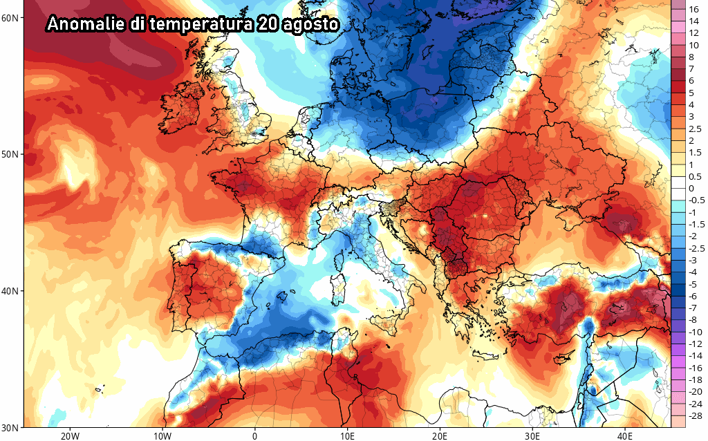 Sarà proprio nella prima metà della prossima settimana che il caldo afoso e fastidioso inizierà gradualmente ad abbandonare il nostro Stivale, lasciando spazio a valori più in linea con il periodo. Il colpo definitivo del “ko” potrebbe arrivare dal 20 agosto, con l’arrivo di una perturbazione ben organizzata dall’Atlantico pronta a investire tutto il centro e il nord Italia. Su questo, però, torneremo con maggiori dettagli nei prossimi giorni.