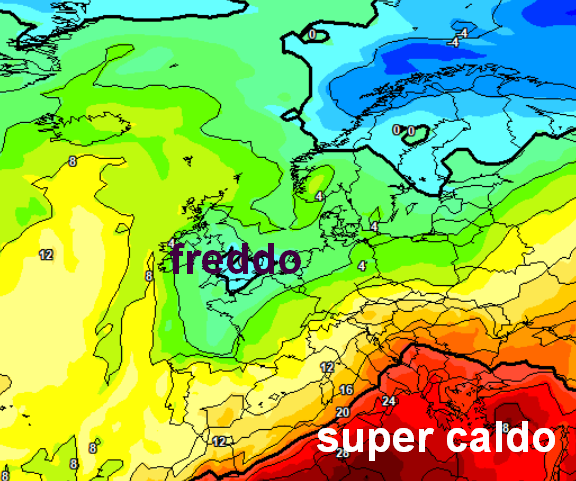 Impressionante la distribuzione termica in Europa nel corso dei prossimi giorni.