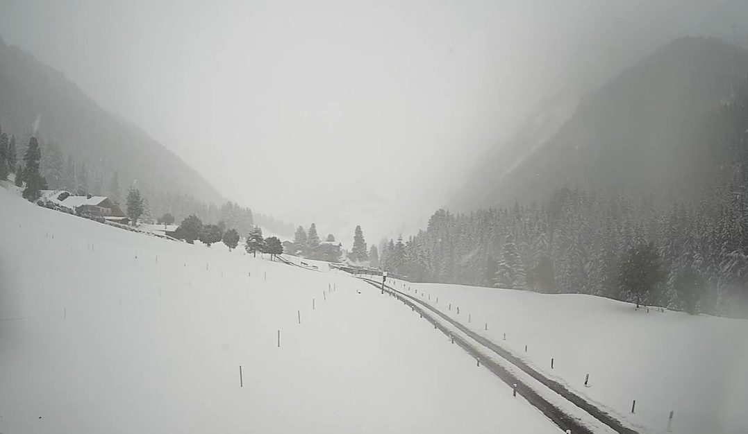 Qui vediamo il risveglio di stamane a Casere, in alta valle Aurina (BZ) a 1595m, nevicava ancora e lo scenario era tipicamente invernale:
