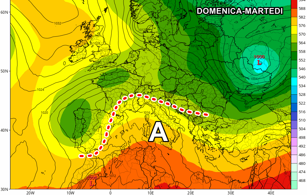 Una pausa dal maltempo potrebbe giungere a partire da sabato e soprattutto da domenica, quando le temperature ricominceranno pian piano a riprendersi grazie al ritorno dell’alta pressione nordafricana.