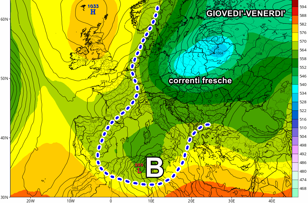 CICLONE sull’Italia fra giovedi e venerdi: le aree colpite