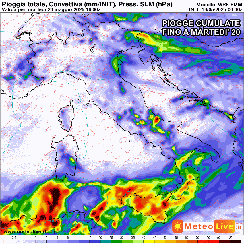 Le regioni più colpite da questa depressione saranno Sicilia e Calabria, dove si prevedono accumuli pluviometrici localmente superiori ai 90 o 100 mm, ma anche Basilicata, Puglia, Molise e Abruzzo riceveranno la visita del maltempo entro venerdì. Contemporaneamente, ci saranno dei temporali sparsi pomeridiani e serali sulle regioni del Nord-Est e nelle aree interne appenniniche.