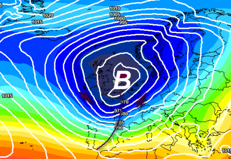 Ecco una mappa che descrive appieno il periodo che andremo a vivere, è prevista per domenica 5 novembre, è uno dei tanti fronti che transiteranno in arrivo da ovest, ma questo sarà uno dei più attivi, perchè legato alla tempesta in transito sul centro Europa e il Regno Unito: