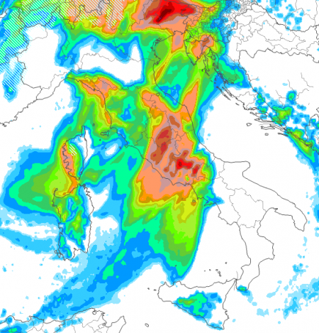 Tanto è vero che se facciamo la sintesi degli accumuli previsti sino a metà novembre, anche il meridione risulta coinvolto da fenomeni magari meno abbondanti, ma certamente presenti. Chiaro: con il Libeccio le aree di Ponente e quelle di nord-est risultano le più esposte ai fenomeni copiosi e talvolta purtroppo con risvolti alluvionali: