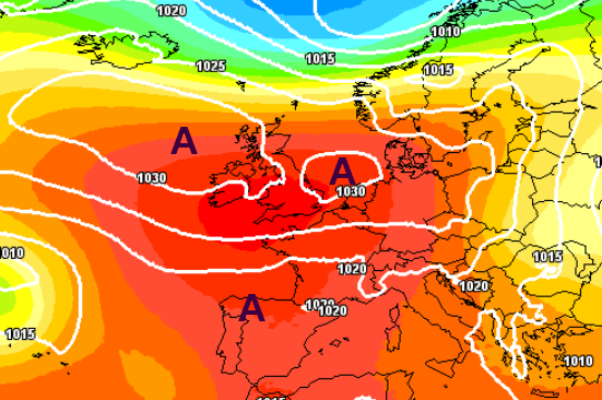 Questa campana anticiclonica non intende abdicare minimamente anche di fronte alla minaccia di quella massa d’aria fresca che vedete confinata ad ovest del Continente. Addirittura alcuni modelli vedono l’anticiclone espandersi ulteriormente verso nord entro metà mese, guardate qui: