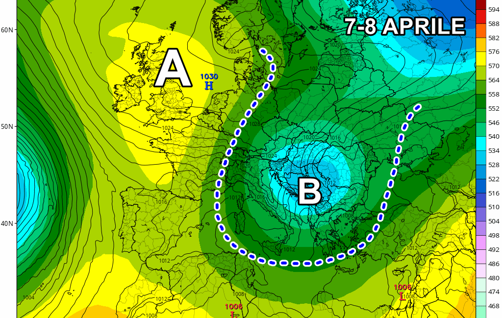 Il modello americano GFS continua a rimarcare il rischio di una potenziale ondata di freddo proveniente dall’est Europa nel periodo tra il 6 e l’8 aprile.