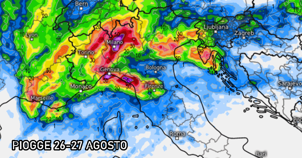 Forte maltempo in vista, finale di Agosto ad alto rischio fenomeni estremi.