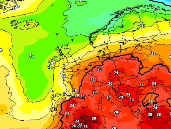 La volontà è quella che si vede in questa mappa termica a 1500m prevista per mercoledì 10 luglio: