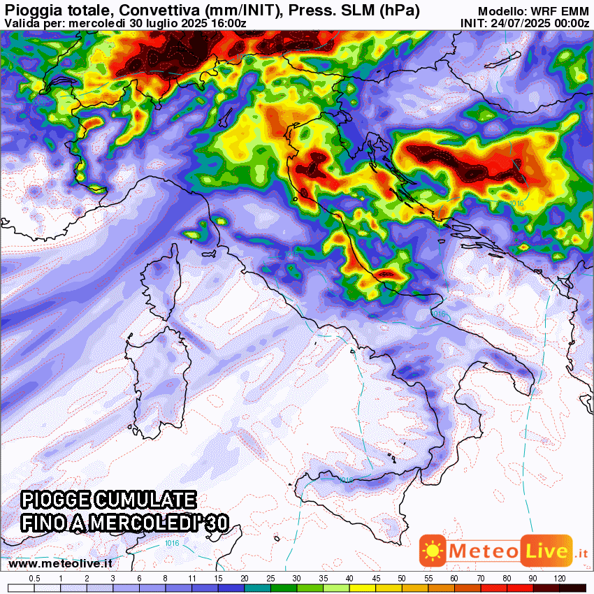Oltre al calo delle temperature arriverà tanto altro maltempo, soprattutto sulle regioni centrali, con piogge e temporali diffusi e forti. In questa occasione potrebbe arrivare un po’ di pioggia anche sulle dimenticate regioni del Sud tra lunedì e martedì, sebbene con accumuli molto più blandi rispetto al resto della penisola.