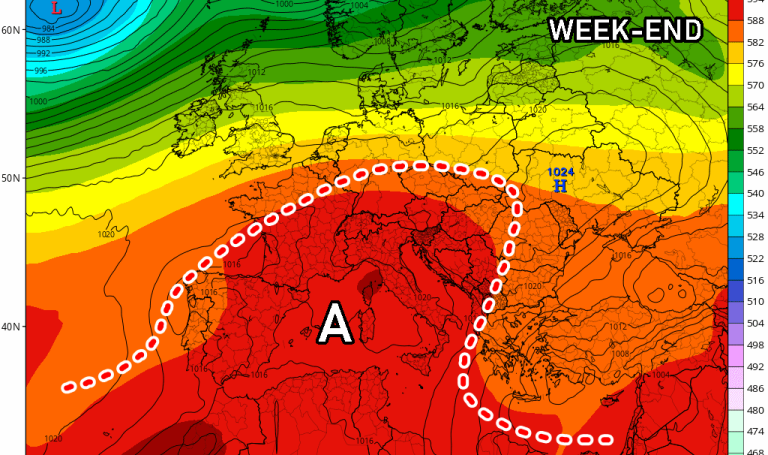 Insomma, ci incamminiamo verso un fine settimana molto caldo, afoso e fastidioso su tutta la nostra penisola, tanto che l’attuale fresco e clima gradevole ci sembrerà un lontano ricordo. Già venerdì sarà una giornata parecchio calda, specie in Val padana e sulle regioni del medio-alto Tirreno, tantoché potremmo raggiungere 34 o 35°C, mentre resisteranno gli ultimi refoli freschi sul Meridione.