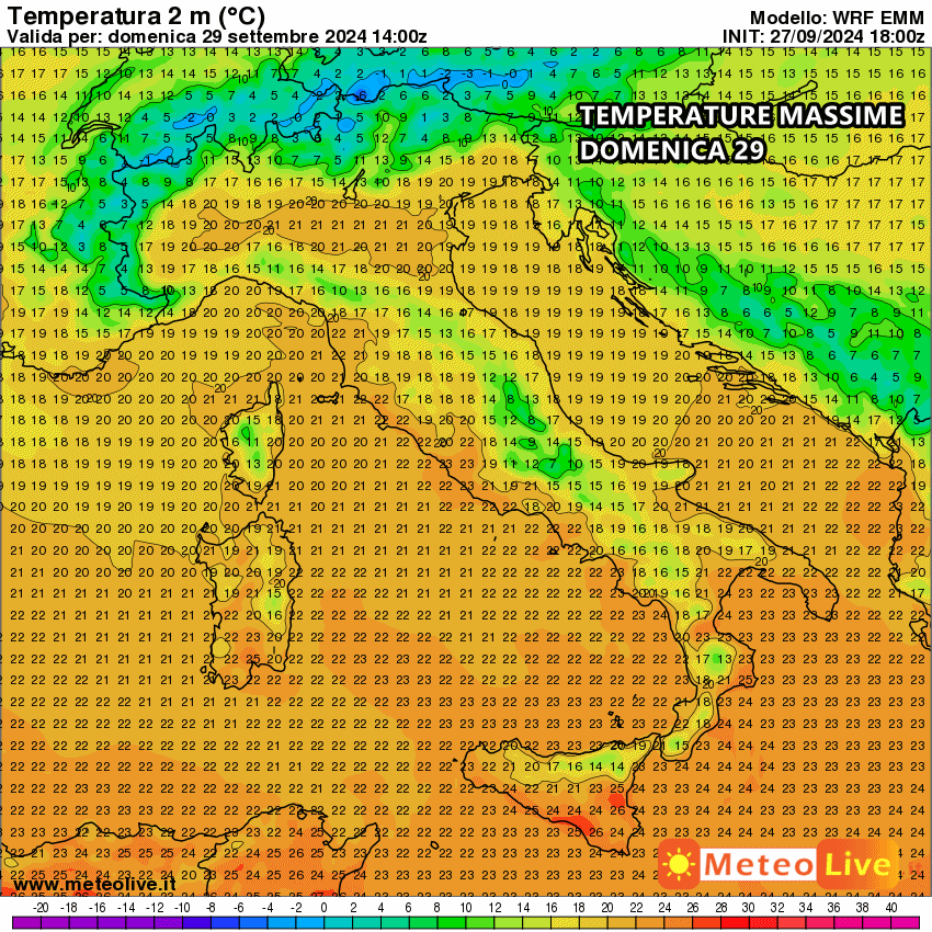 Certamente domani farà molto più fresco anche al sud. Le massime previste sono di almeno 10°C più basse rispetto a questi ultimi giorni. Clima fresco anche al nord con massime di 20-21°C. Solo in Sicilia isolati picchi di 25-26°C, ma con bassi punti di rugiada.