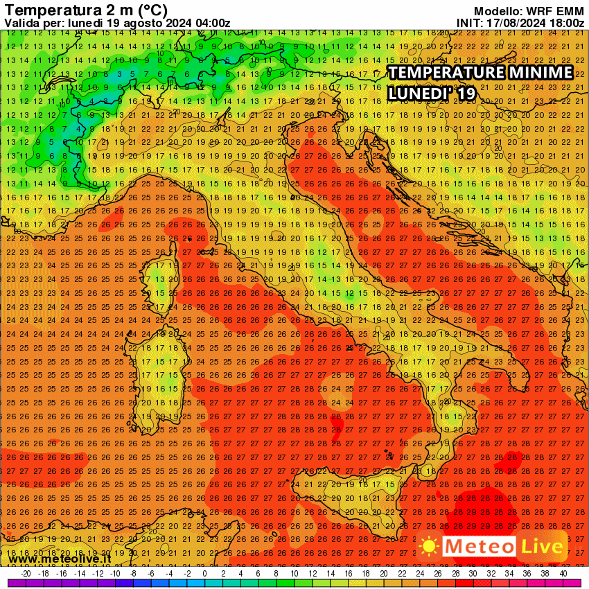 Ciò che più salta all’occhio è il calo delle temperature che riguarderà tutta Italia. Già in queste ore le temperature sono nettamente scese su tutto il Nordovest, segno dell’ingresso dell’aria fresca dalla Francia. Le minime di lunedì, cioè quelle della prossima notte, saranno nettamente più basse anche su centro e sud, tanto che la colonnina di mercurio potrebbe finalmente riportarsi sotto i fatidici 20°C di notte, un valore che fino ad oggi sembrava quasi impossibile.