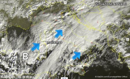 Come ampiamente previsto nei giorni scorsi il tempo sta rapidamente peggiorando su tante nostre regioni per merito di una perturbazione atlantica in movimento rapido da ovest verso est.