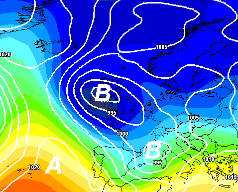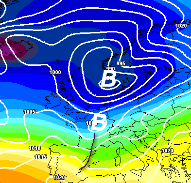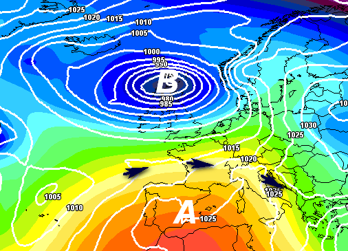 Cominciamo comunque dal primo passaggio piovoso, quello tra San Silvestro e Capodanno, vi mostriamo lo schema barico, ormai condiviso un po’ da tutti i modelli e le conseguenze precipitative secondo il modello europeo:
