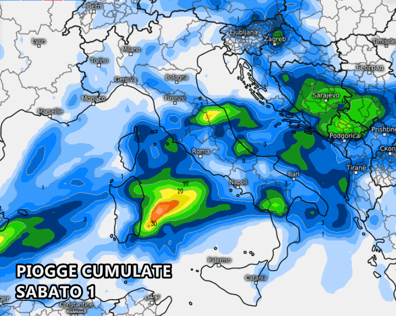 Nella giornata di sabato 1° marzo, potrebbero verificarsi piogge, soprattutto sul Medio-Basso Adriatico e sulle regioni centrali, dove si svilupperebbe un ampio fronte freddo, colmo di acquazzoni, temporali e locali grandinate.