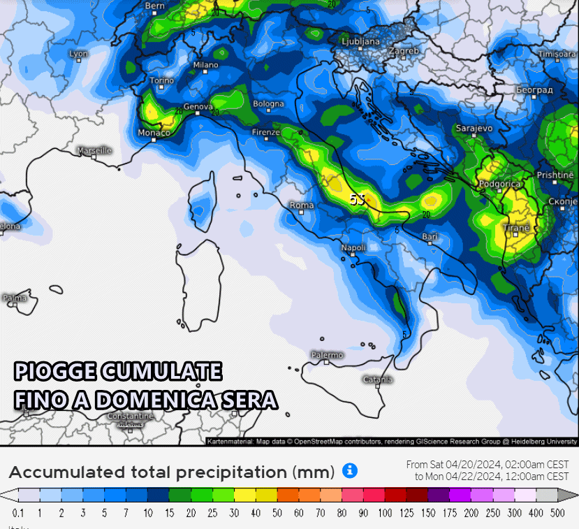 Ma andiamo con ordine e vediamo cosa ci aspetta nella giornata di domenica 21 Aprile. Sarà un fine settimana nel complesso instabile sulle regioni del medio basso versante Adriatico, soprattutto al mattino e poi in serata anche sulle regioni del Nord. Per quanto riguarda il medio Basso Adriatico si tratterà di deboli piogge sparse, un po’ di vento di maestrale legato alla perturbazione che attualmente sta attraversando il centro-sud Italia, mentre per quanto riguarda il Nord Italia si tratterà di fenomeni legati alla nuova depressione che prenderà vita sull’Alto Tirreno e il Mar Ligure. In questo caso ci aspettiamo lo sviluppo di isolati acquazzoni e anche locali forti temporali sulla Valpadana, specie sui settori centro occidentali.