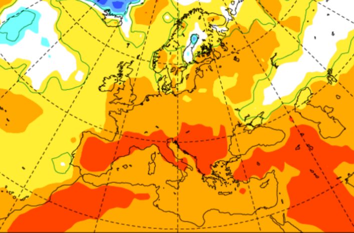 Le proiezioni del modello europeo per i prossimi mesi evidenziano un solo colore nelle mappe: il ROSSO.