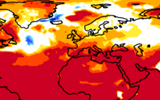 Invece il modello europeo, pur non fornendo indicazioni sicure ma solo proiezioni, ci dà l’idea che il mese più caldo e stabile sull’Italia possa risultare sorprendentemente quello di APRILE, lo vediamo in questa mappa che mostra la distribuzione termica a 2m sul Continente e dove si nota come il mese risulti caratterizzato da temperature elevate, sopra la media: