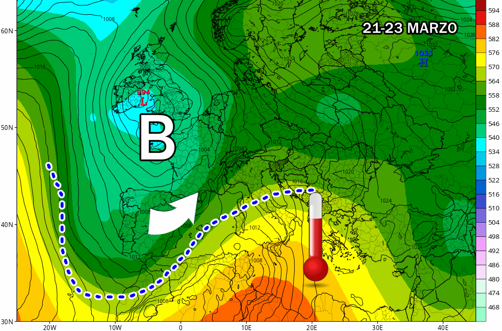 Infatti, da venerdì 21 marzo, si avvicinerà una perturbazione atlantica, che porterà piogge e temporali sul Nord-Ovest. Sarà proprio questa perturbazione a innescare venti più tiepidi di scirocco e libeccio su gran parte del Centro-Sud, tra venerdì, sabato e domenica, facendo salire le temperature oltre le medie del periodo in molte città del Meridione.