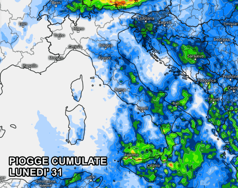Gli ultimi fenomeni si registreranno al sud e sulle isole maggiori nella giornata di mercoledì. Dopodiché, l’alta pressione ingloberà tutta la penisola, dando inizio a un periodo più stabile e anche un po’ più gradevole.