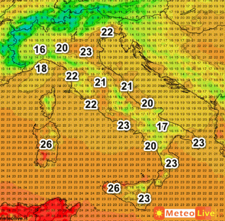 Queste sono le temperature attese in Italia alle ore 16 di oggi: