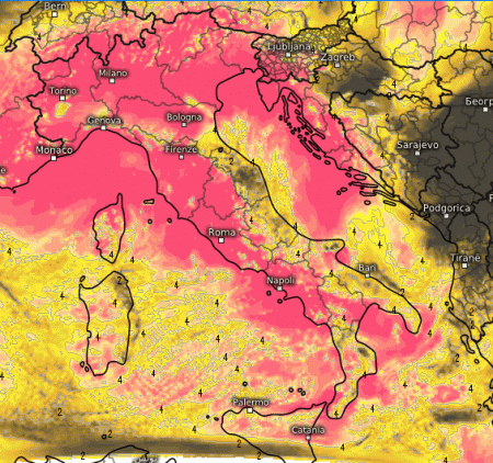 Soleggiamento abbastanza compromesso su tutta l’Italia, ma in modo particolare al nord-ovest, dove si avranno piogge residue e al sud, dove invece si avranno temporali anche forti.