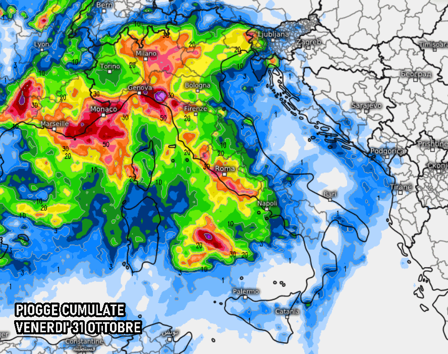 Il tempo dovrebbe mantenersi un po’ più asciutto sul basso adriatico e sul Sud Italia, anche parecchio gradevole con massime oltre i 20°C su tante città. Da valutare l’arrivo del maltempo entro tarda sera o nella notte del 1° novembre anche al sud!